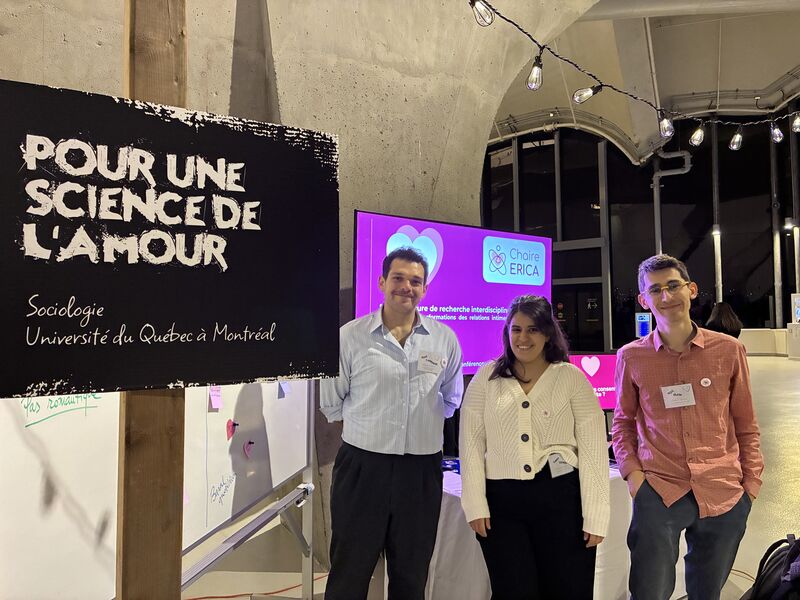 Notre stand, intitulé Pour la science de l’amour était divisé en trois espaces thématiques, chacun explorant un aspect des intimités contemporaines à travers les travaux menés au sein de la Chaire ERICA